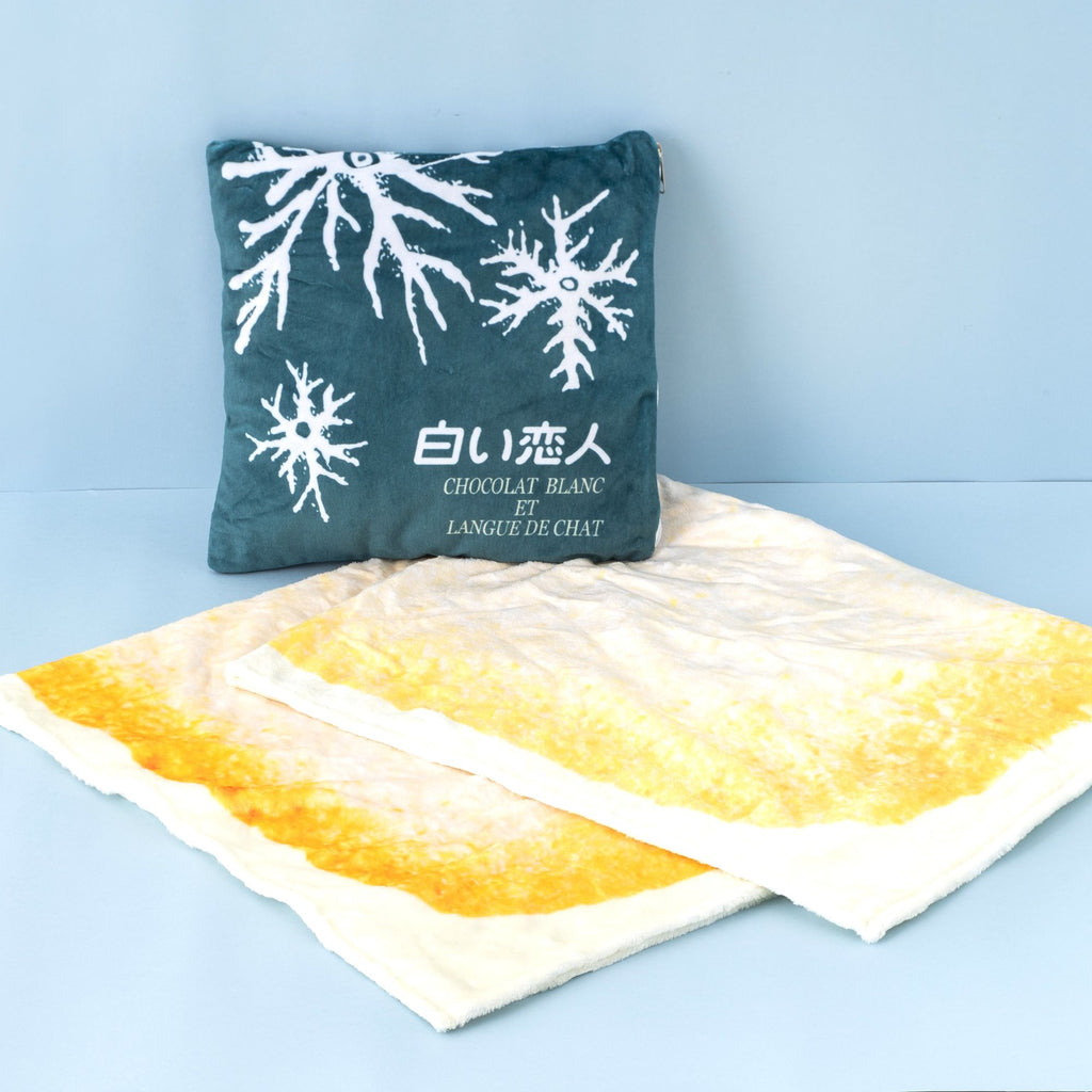 白い恋人のオリジナルクッションブランケット。